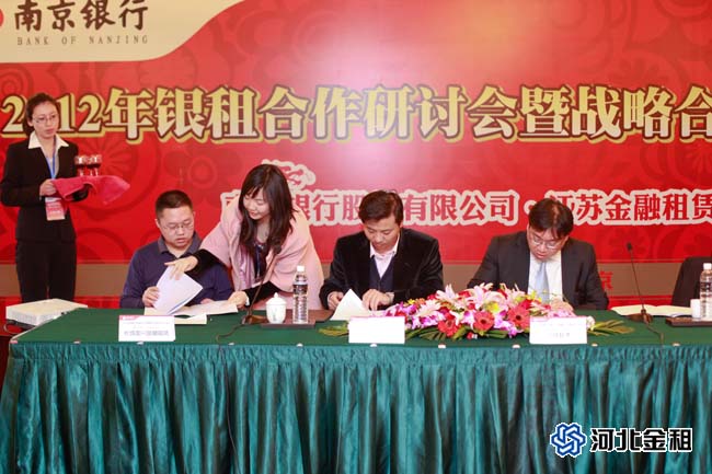 此次會議,我公司與南京銀行在綜合授信、資金融資、應收租賃款回購、聯(lián)合融資、理財資產推薦、客戶推薦、投行業(yè)務等方面達成了合作共識,為致力于建立長期、穩(wěn)定、互利、共贏的全面戰(zhàn)略合作伙伴關系,不斷提升雙方的合作深度與廣度,公司總裁徐敏俊與南京銀行副行長禹志強在簽字儀式上簽署了《戰(zhàn)略合作協(xié)議》。