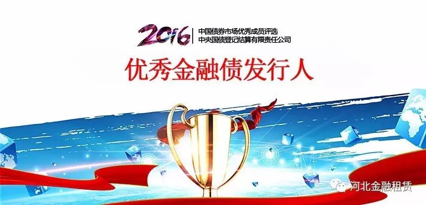 日前,中央國債登記結(jié)算有限責(zé)任公司發(fā)布2016年度中國債券市場優(yōu)秀成員評選結(jié)果,河北省金融租賃有限公司被評為“2016年度全國金融債優(yōu)秀發(fā)行人”,進一步彰顯了河北金租的品牌和市場影響力。