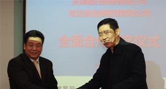 2011年11月15日,公司與天津銀行在河北省石家莊市河北建投大廈舉行了全面合作簽約儀式,周為民總裁與天津銀行副行長(zhǎng)岳德生代表雙方簽署了《全面合作協(xié)議書(shū)》,天津銀行為公司先期提供同業(yè)授信額度4億元,定向用于開(kāi)展協(xié)議約定項(xiàng)下業(yè)務(wù)。
